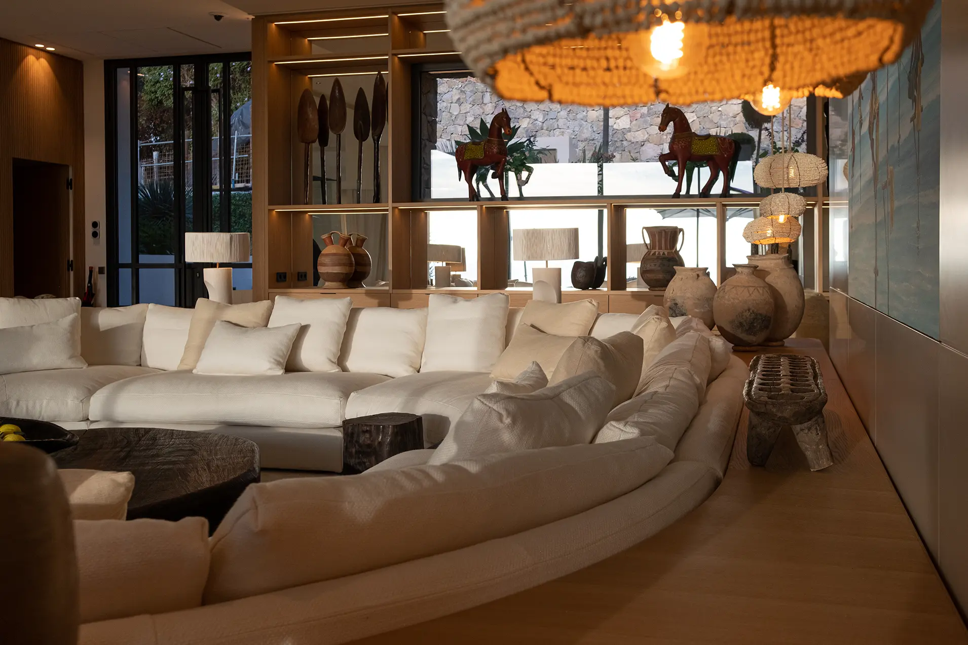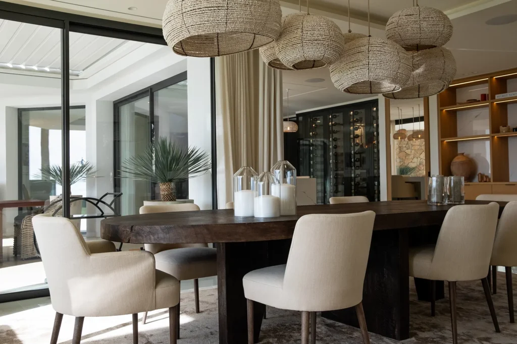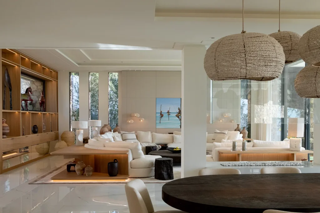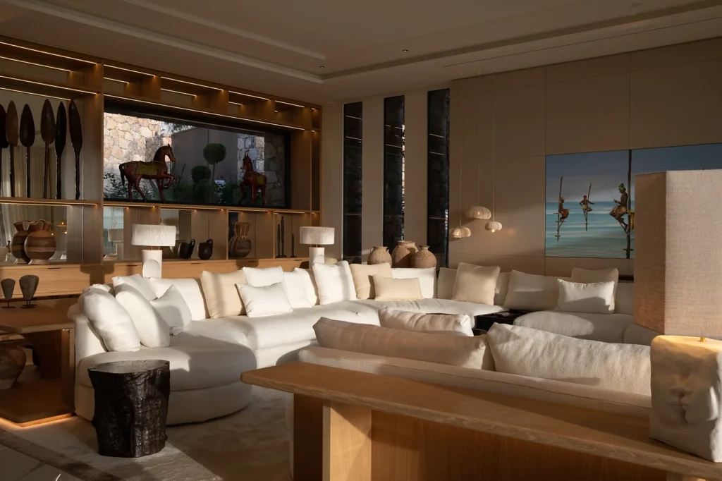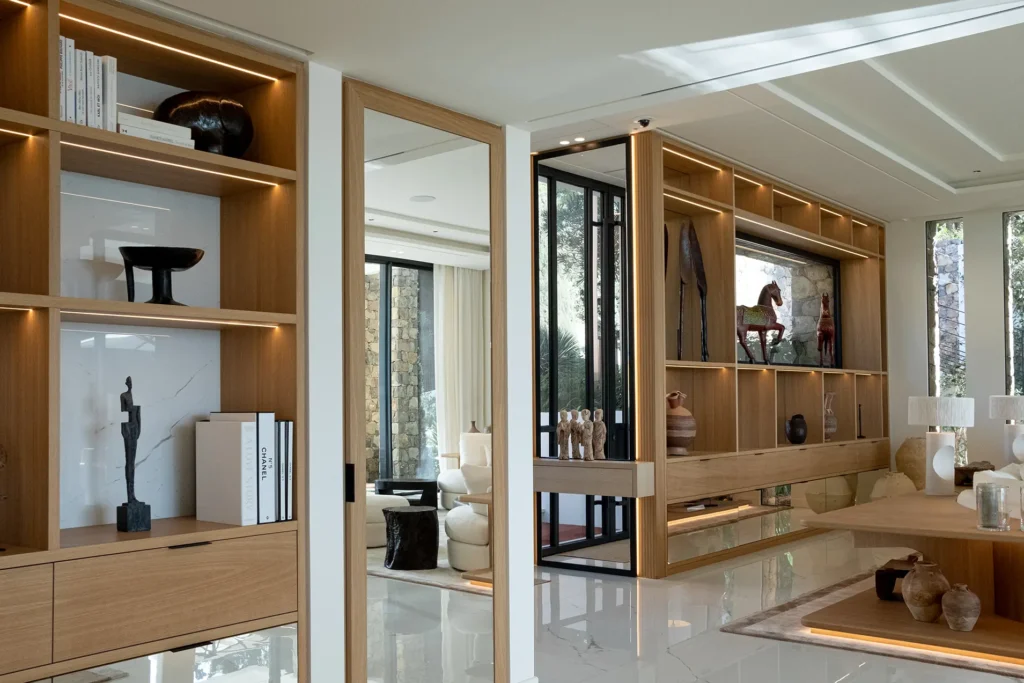 Il progetto si sviluppa in relazione diretta con il contesto, sfruttando la posizione dominante della villa sulla costa di Cannes. Gli arredi su misura sono definiti per ciascun ambiente, con soluzioni pensate in funzione degli spazi e del loro utilizzo.