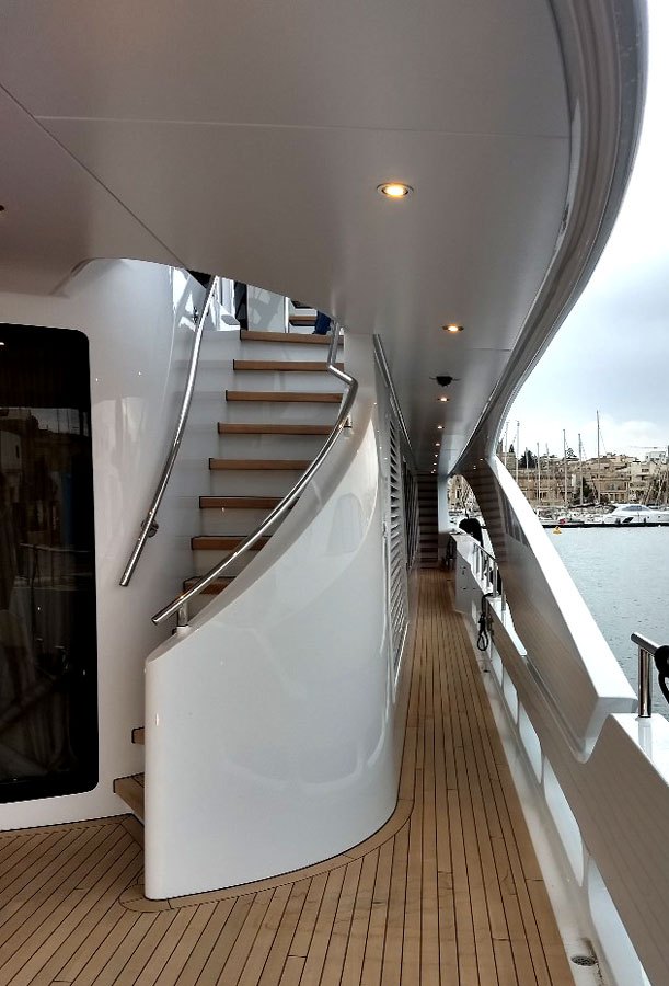 L'utilizzo di teak nautico, unito a vernici e trattamenti dedicati, sono solo alcuni dei molteplici materiali e soluzioni che scegliamo per progetti dove il contatto con l'acqua, l'umidità e il movimento stesso dell'imbarcazione sono criticità da tenere in considerazione. Alla base di ogni realizzazione c'è la sicurezza che, anche in situazioni critiche dove non c'è solo la prova del tempo da superare, arredi e soluzioni mantengano inalterate le proprie caratteristiche.